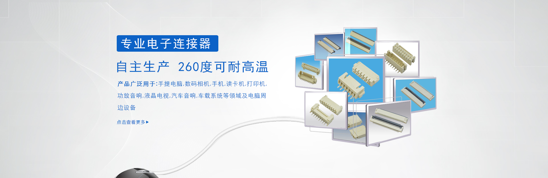 經(jīng)營項目:FPC連接器、接插件、光纖連接器、FFC排線、端子線束等。間距有:0.3mm/0.5mm/0.8mm/1.0mm/1.25mm/1.5mm/2.0mm/2.54mm/3.96mm.......并可以為您開模定制各類精密連接器及配套線束.
